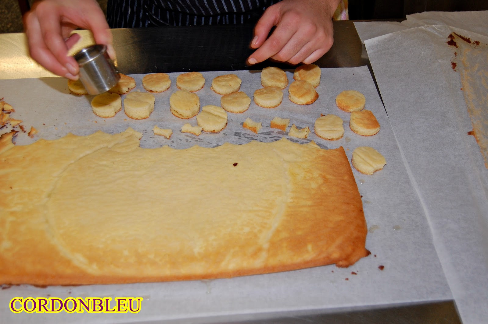 cortapastas redondo, se corta el bizcocho y se pone encima de la sopa. Sobre